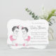 Jolie invitation baby shower fille jumelle rose et argent. Cette invitation à baby shower jumeau rose douce pour petite fille mignonne est facilement customisée pour votre événement en ajoutant vos détails de l'événement, le style de police, la taille et la couleur de police et le libellé. Veuillez noter que tous les autocollants, cartes et modèles d'invitation que vous trouverez sur Zazzle sont des graphiques imprimés sans bijoux, arcs, surélevés, gaufrés, ni pièces ou pièces ajoutées.