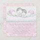 Adorable invitation à la douche bébé de fille jumelle gris et rose. Doux jumelles roses avec dentelle blanche.