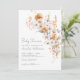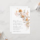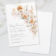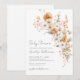 Elégant Fleur sauvage Floral Baby shower Invitation. Faites la fête aux parents grâce à ce design doux et romantique, parfait pour un baby shower sans distinction de genre. Le titre en haut indique "Baby shower", mais il peut être personnalisé selon votre style ou message. Le design est composé d'un bouquet de fleurs d'aquarelle placé sur la droite, qui présente un beau mélange de fleurs blanches, oranges brûlées, crème et roses rousses. Les feuilles doux et verts apportent un équilibre chaud et terreux qui crée un look cosy et accueillant. Le texte est composé d'une combinaison de scripts manuscrits et de polices serif classiques, offrant une sensation moderne et intemporelle. Parfait pour les baby showers d'automne ou d'automne, ce design ajoute une douce touche de saison à votre célébration, mais il fonctionne bien à tout moment de l'année. Entièrement personnalisable et disponible sous forme de carte imprimée ou de fichier numérique téléchargeable.