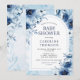 Invitation Elégant Baby shower Garçon Fleurs Bleues