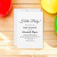 Cette élégante invitation au Baby shower noir et blanc est parfaite pour un Baby shower moderne. le design simple présente une élégante calligraphie noire sur un arrière - plan blanc.