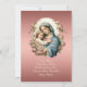 Avec une belle invitation Baptême Christening faite sur mesure, une belle image de la Bienheureuse Mère Marie tenant le Bébé Jésus accentué de roses roses.