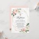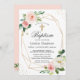 Invitation Élégant Baptême floral rose et baptême
