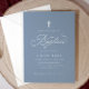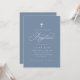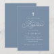 Invitation Élégant Baptême Script Croix Bleu Dusty