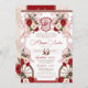 Invitation Élégant Baroque Floral Rouge Quinceañera
