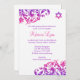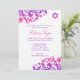 Une élégante invitation à la Bat mitzvah violette et rose chaud. Avec de jolies tourbillons fleuris et Star of David. Contactez le concepteur pour ajouter le nom hébreu.