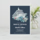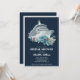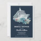 Elégante invitation de bateau de croisière de douche nuptiale. Personnalisez-le avec le nom de la mariée et les détails de la fête, y compris la date, la ligne de croisière, le port de départ, les informations RSVP, et toute autre information nécessaire pour vos demoiselles d'honneur. Conception avec un bateau aquarelle et de belles fleurs sur un arrière - plan bleu marine et des détails argentés.