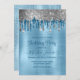 Cette élégante et élégante parties scintillant brillante bleu et argent goutte l'invitation de fête d'anniversaire est parfait pour n'importe quel âge avec cool bébé bleu brossé faux parties scintillant en métal goutte à goutte et strass goutte à goutte design sur la chaîne de fixations dans le dos. Personnalisez-le avec vos propres informations avec de belles polices monographiques.