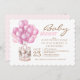 Invitation Elégant bébé fille douche rose Ballons