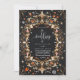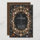Joyaux noirs élégants Décorés : Un design de faire-part de mariage exquis et luxueux, avec des motifs floraux, intimement liés aux accents d'or, danse gracieusement à travers la carte. Ces éléments floraux se mêlent aux lumières scintillantes, invitant à une majestueuse célébration de l'amour et de l'union. L'invitation promet une expérience inoubliable, où les clients seront plongés dans l'opulence d'une affaire royale, entourés par la splendeur d'un mariage somptueux et enchanteur.
