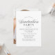 Invitations élégants de la fête de remise de diplômes présentant les détails de votre fête de remise de diplômes avec écriture de script de calligraphie noire. L'invitation de la simple fête de remise de diplômes s'inverse pour montrer la photo de fond de sang du diplômé. L'invitation de la fête de graduation en calligraphie est parfait pour les diplômés du secondaire et du collège!