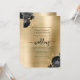Invitation Elegant Black Floral Gold Brushed Metal Wedding