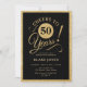 50th birthday party invitation in black and faux glitter gold. Simple modern design, perfect for an elegant men's or women's bday celebration. Cheers to 50 years! Customize with your own details. Can be personalized into any age. Printed Zazzle invitations or instant download digital printable template.