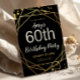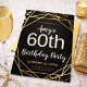 Celebrate this remarkable milestone in style with this elegant black and gold 60th birthday party invitation. The luxurious geometric gold accents and modern typography create a sophisticated, upscale look perfect for any formal or semi-formal celebration. Personalize the name, age, date, location, and RSVP details to make it uniquely yours. Ideal for glamorous birthday parties, evening events, and milestone celebrations.