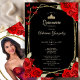 Invitation Elegant Black Gold and Red Roses Quinceanera