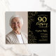 Invitation Elégant Black Gold Floral Photo 90e anniversaire