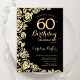 Invitation Elégant Black Gold Roses 60e fête d'anniversaire