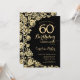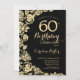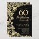 Black Gold Floral 60th Birthday Party Invitation. Design élégant avec des roses, fausse feuille d'or et police de script de typographie. Carte invitation tendance parfaite pour une célébration anniversaire élégante. Peut être customisé à n'importe quel âge. Invitations Zazzle imprimées ou téléchargement instantané modèle imprimable numérique.