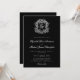 This elegant black and white monogram wedding invitation features an ornate crest with interlocked fancy script calligraphy for the initials of the bride and groom and the names, in classic black and white. Find matching products in the collection, or message me through Zazzle Chat for more products and design tweaks.