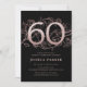 Elégante invitation de fête de 60e anniversaire de rose noir or. Design féminin moderne et personnalisable, avec des accents botaniques rose et de l'or rose faux parties scintillant. Carte invitation florale simple parfaite pour une célébration anniversaire élégante. Personnalisez avec vos propres détails. Invitations Zazzle imprimées ou téléchargement instantané modèle imprimable numérique.