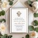 Annoncez votre journée spéciale avec grâce raffinée et beauté spirituelle en utilisant cette Elegant White avec Faire-part de mariage Gold Trim. Au centre de ce design intemporel se trouve une croix décorative ornée, qui ressemble à du bois sculpté à la main, orné d'embellissements floraux complexes. L'arrière - plan blanc doux, associé à des touches dorées luxueuses, crée une atmosphère romantique et sacrée, parfaite pour les mariages traditionnels et inspirés par la foi. Cette invitation personnalisable est idéale pour les couples à la recherche d'une façon significative et élégante de partager leur histoire d'amour. La croix florale symbolise l’amour, l’unité et la grâce divine, ce qui en fait plus qu’un design magnifique, c’est le reflet de votre engagement. Utilisée comme pièce autonome ou partie d'une suite mariage complète, cette invitation offre une introduction classique mais distinctive à votre célébration mariage.