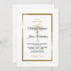 Invitation vos invités pour vous aider à célébrer votre journée spéciale avec cette élégante invitation avec script moderne, texte noir et or y compris un palmier artistique et cadre en feuille d'or métallique sur le devant de la carte. Un arrière - plan blanc est à l'avant et à l'arrière.