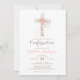 Elégante invitation de confirmation blanche avec une croix florale rose-rousse.Personnalisez avec vous le texte. Assurez-vous de vérifier tous les autres articles de cette jolie collection de confirmation pour elle.