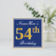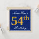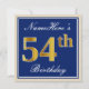 Ces caractéristiques de conception simples et élégantes d'invitation de fête d'anniversaire un message personnalisé comme "anniversaire de NameHere le cinquante-quatrième" (avec le "cinquante-quatrième" ayant un faux/imitation or-comme le regard de coloration) dans un secteur carré bleu-coloré comportant un contour simple. Le nom dans un élégant blanc-est coloré manuscrit-comme le texte, et peut être customisé. Le dos comporte les détails personnalisables d'invitation. Une invitation de fête d'anniversaire comme ceci pourrait peut-être être employée en invitant des personnes à une fête d'anniversaire étant tenue pour quelqu'un qui célèbre leur quatrième anniversaire cinquante. [~Z0000228]