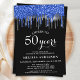 Invitations amis et la famille à votre fête d'anniversaire avec ces élégantes parties scintillant bleu, argent et noir goutte d'invitations à la fête de 50e anniversaire et fournitures de fête. Cette élégante invitation d'anniversaire chic propose "Cheers to 50 Years", personnalisez les années pour 30, 40, 60, 70, 80, 90 ou tout âge. Cette parties scintillant bleue et noire est parfaite pour des événements sur le thème de la police, des fêtes de police, des forces de l'ordre, ainsi que des célébrations d'entreprise et d'entreprise. Consultez notre collection pour obtenir des faveurs, des fournitures et des cadeaux d'anniversaire assortis. DROIT D'AUTEUR © 2020 Judy Burrows, Black Dog Art - Tous droits réservés. Elégant Bleu Argent Black Parties scintillant Drips 50 Anniversaire Invitation