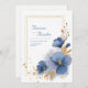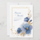 Invitation Élégant bleu azur fleurs et Mariage feuille or
