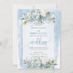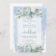 Invitation Elégant bleu bleu blanc peonies d'argent Mariage