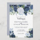 Une élégante invitation avec vos détails mariages entourés de magnifiques fleurs dans les tons bleu, blanc et riche marine. La carte revient à un bleu chaud et poussiéreux avec un petit bouquet au centre. Vous pouvez ajouter votre propre message spécial et modifier le style de police en accédant au menu personnaliser. Cette invitation fait partie d'une belle suite de mariage assortie qui peut être entièrement personnalisée.
