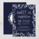 Elégant, moderne et chic, blanc et tendance motif floral bleu marine tiré à la main, Sweet 16 anniversaires de fête d'anniversaire invitations. Ce design classique et sophistiqué est parfait pour une fille d'anniversaire classe, branchée et élégante. Personnalisez avec votre propre message sur le devant et un monogramme customisé sur le dos. Toute la conception d'impression photo.