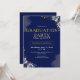 Un arrière - plan sophistiqué qui invite à la remise de diplômes avec une toile bleu marine profonde ornée d'élégants accents floraux d'aquarelle en gris et or doux. Les recoins sont décorés de roses, de feuilles et de bourgeons aux motifs complexes, créant une atmosphère luxueuse et raffinée. Parfait pour l'élaboration d'invitations à des événements de graduation élégantes et formelles.