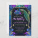Invitation Elégant bleu et violet de paon floral Anniversaire