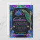 Invitation Élégant bleu et violet rose pochoir à fleurs doux