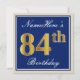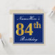 Invitation Elégant, Bleu, Faux Or 84ème Anniversaire + Nom