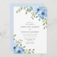 De belles fleurs d'aquarelle bleue et la verdure décorent cet élégant faire-part de mariage floral. Utilisez les outils de modèle en ligne pour modifier le style de police, la couleur et l'arrière - plan à l'un de vos choix.