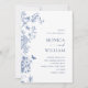 Invitation Elégant bleu Français Garden Wedding Code QR