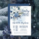 Invitation Elégant bleu hiver Floral Garçon Bébé Parsemer