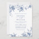 Invitation Elégant bleu Jardin Français Floral Mariage QR cod