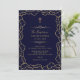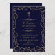 Invitation Élégant bleu marine Croix de la Fleur d'or Baptême