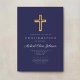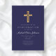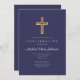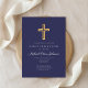 Invitation Elégant bleu marine Croix religieuse Confirmation