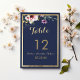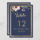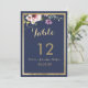 Invitation Elégant bleu marine or rose floral chiffres de tab