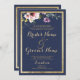 Elégant Faire-part de mariage bleu marine, or et rose floral. Cette invitation à la fête botanique de luxe à fleurs Mariages est parfaite pour n'importe quelle fille glamour classe et sophistiquée. Ce design est idéal pour un événement de fête branché et élégant. Customisez ce design avec votre propre message et des informations personnalisées. Tous les dessins sont imprimés.