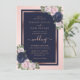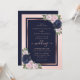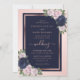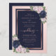 Invitation Elégant bleu marine Rose or Floral Mariage