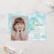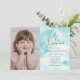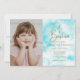 Elégante, minimaliste et moderne invitation au baptême avec bleu aquarelle arrière - plan faux feuille d'or croix et des taches d'or avec police simple et moderne.