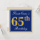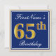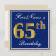 Invitation Elégant, Bleu, Or Faux 65e Anniversaire + Nom