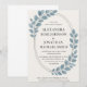 Célébrez votre journée spéciale avec cette élégante invitation de mariage avec des anneaux ovales d'argent concentrique et des feuilles botaniques bleus doux. Mélange parfait de minimalisme moderne et de romantisme intemporel, ce design encadre vos détails mariages dans le style. Idéal pour les mariages de jardin, les fêtes rustiques ou les événements modernes chic, ce modèle personnalisable vous permet de modifier facilement les noms, les dates et les détails du lieu. Imprimée sur papier de qualité avec des détails vibrants, cette invitation de mariage ajoute une touche sophistiquée à votre célébration.