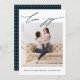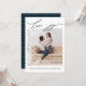 Cet élégant accueil de vacances comprend un joli motif à pois bleu et blanc d'hiver. Jolie calligraphie d'amour et de joie et votre message personnel ajoutent aux designs des détails festifs. Personnalisez avec votre photo de vacances préférée !